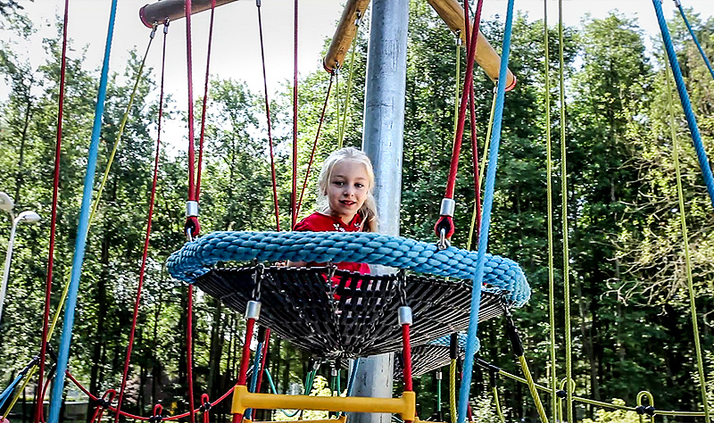 Park Linowy Paprocany oferuje 12 tras, na pięciu poziomach wysokości: