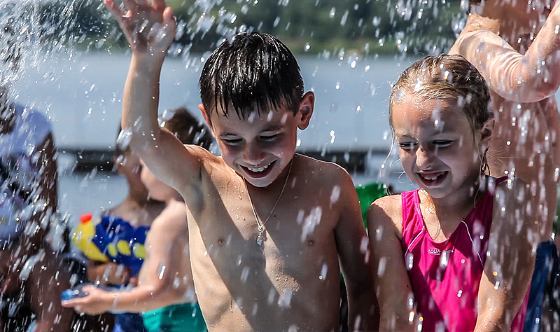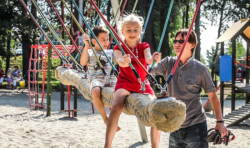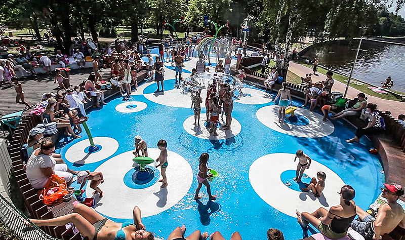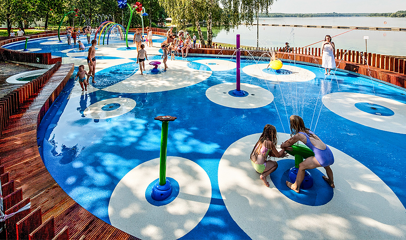 W cieplejsze dni warto odwiedzić Wodny Plac Zabaw, który zaskoczy zarówno młodsze jak i starsze dzieci. Do ich dyspozycji są: tęczowa wodna brama, zawieszone wiadra przelewowe, fontanny w formie kwiatów i wiele innych. Te atrakcje przeznaczone są dla starszych pociech, ale nie zapomniano też o maluchach. Specjalnie dla nich wydzielono strefę, w której fontanny oraz armatki wodne mają odpowiednio niższe ciśnienie. Dopełnieniem bezpiecznej zabawy jest antypoślizgowa podłoga.
